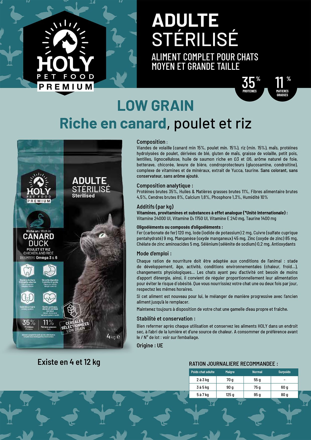 HOLY SUPER PREMIUM CHAT ADULTE STÉRILISÉ 35/11 en 12kg